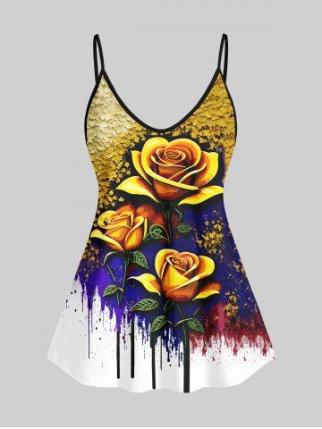 Plus Size Rose Flower Paint Drop Sequins Print Cami Top(Adjustable Shoulder Strap) - Multi-a - M