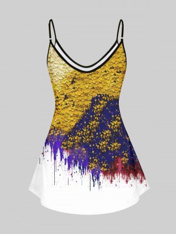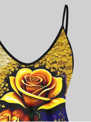 Plus Size Rose Flower Paint Drop Sequins Print Cami Top(Adjustable Shoulder Strap) - Multi-a - 6x