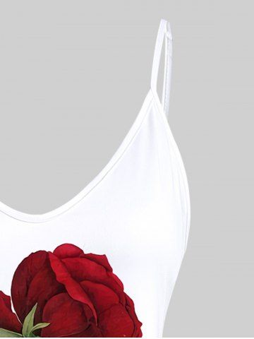 Plus Size Rose Print Cami Top (Adjustable Straps) - White - 3x | Us 22-24