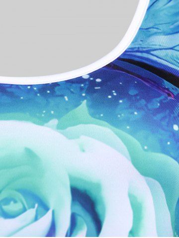 Plus Size Rose Print Lace Panel Tank Top - Multi-a - 1x | Us 14-16