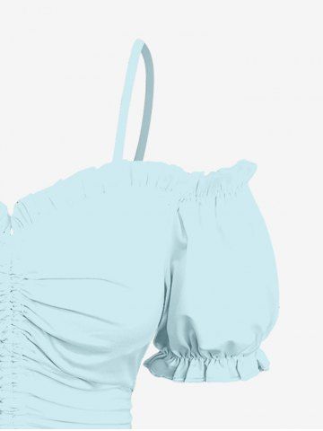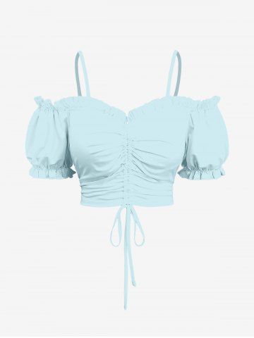 Plus Size Ruched Cinched Ruffles Cold Shoulder Cami Top - Light Blue - 1x