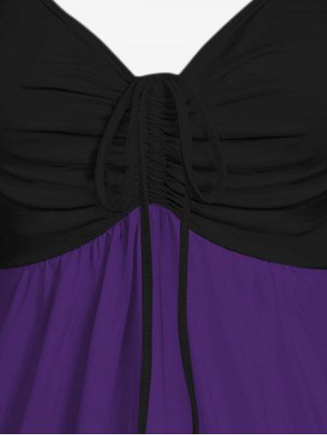 Plus Size Ruched Cinched Two Tone Tank Top - Concord - 4x