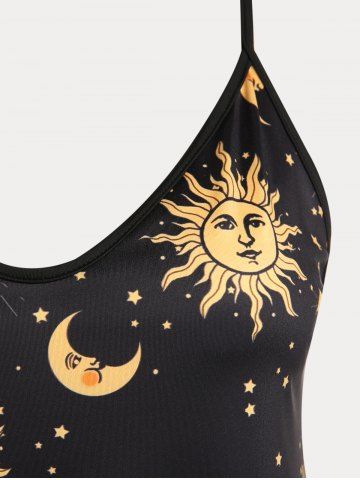 Plus Size Sun Moon Star Print Cami Top (Adjustable Shoulder Strap) - Black - 2x