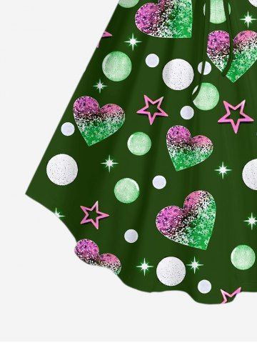 Plus Size Valentine's Day Heart Moon Star Colorblock Glitter Sparkling Sequin 3D Print Cinched Tank Top - Deep Green - 5x