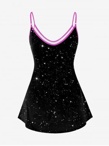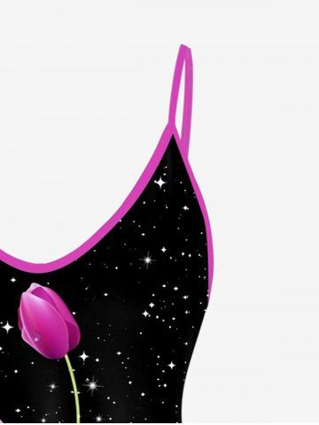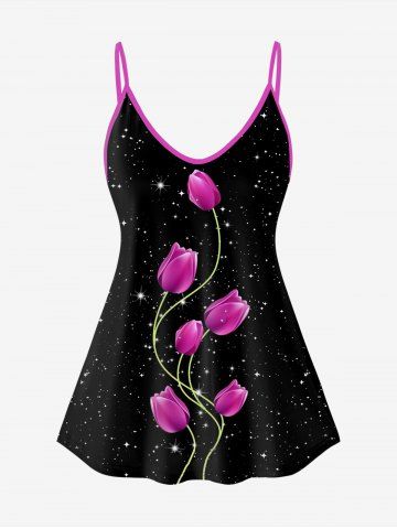 Plus Size Valentines 3D Sparkles Rose Printed Tank Top (Adjustable Straps) - Purple - 4x | Us 26-28