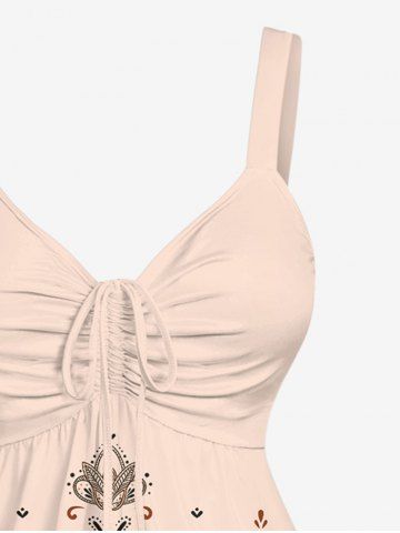 Plus Size Vintage Floral Graphic Striped Paisley Print Cinched Backless Tank Top - Beige - 6x