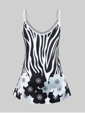 Graphic Tanks > Plus Size Zebra Floral Print Tank Top