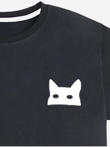 Cat Printed Short Sleeves Unisex Short Sleeves Tee - Black - M