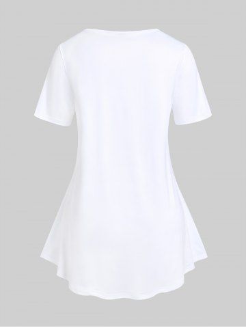 C*****e5Color: WHITE Size: 1X | US 14-16i love these graphic tee shirts their nice for a business casual outfit and comfortable also great for wearing in a casual setting the material is a satin like material so it's a little dressier for business casual also their wrinkle free which i love
