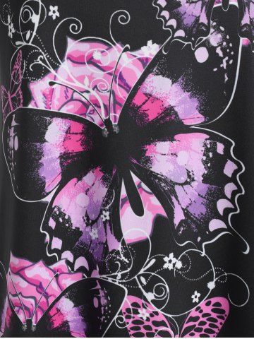 Floral Butterfly Print Plus Size Tunic T-shirt - Black - 5x | Us 30-32