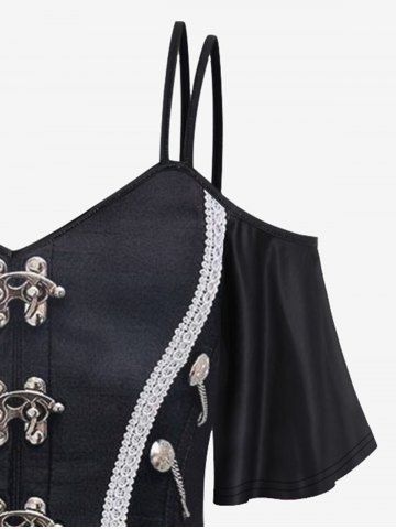 Plus Size 3D Buckle Chains Print Cold Shoulder T-shirt - Black - 6x