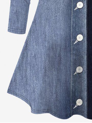 Graphic Tees > Plus Size 3D Buttons Pockets Distressed Denim Two Tone Patchwork Printed Long Sleeves T-shirt