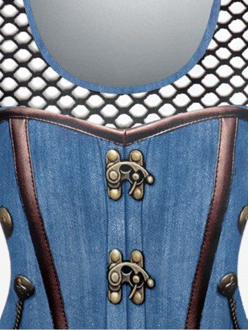 3D Checkered Jeans And Figure Print T-Shirt and 3D Jeans Lace Up Print Skirt Plus Size Outfit