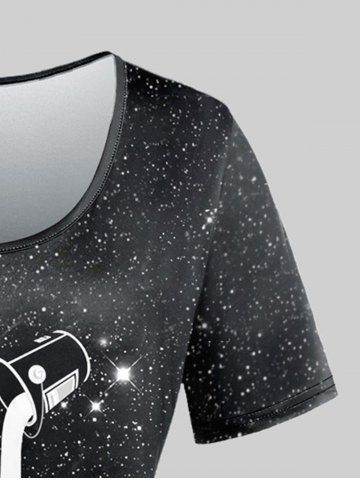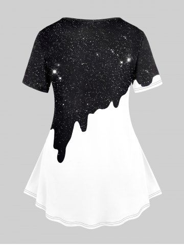 Plus Size 3D Colorblock Light Beam Paint Splatter Print Short Sleeve Round Neck T-Shirt - Black - S | Us 8