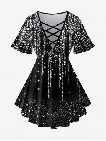 S*****n5Plus Size 3D Crisscross V-Neck Butterfly Lace Up Print Short-Sleeved T-ShirtColor: BLACK Size: L | US 12love this top so much that I have purchased every color and pattern that rosegal offers. I get so many compliments every time I wear it. Great length.