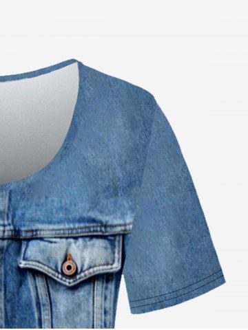 Plus Size 3D Denim Paint Splatter Printed Tee - Blue - S | Us 8