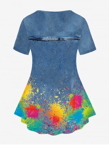 Graphic Tees > Plus Size 3D Denim Paint Splatter Printed Tee