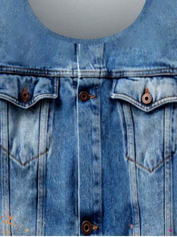 Plus Size 3D Denim Paint Splatter Printed Tee - Blue - L | Us 12