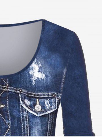 A*****e5Plus Size 3D Jeans Lace-up Pattern Printed Pull On Flare 70s 80s Disco PantsColor: LIGHT BLUE Size: 2X | US 18-20soft silky feeling printed legging pants. love the flare at the bottom. super comfy. best to wear with a little heel as they are a bit longer, they still are amazing.