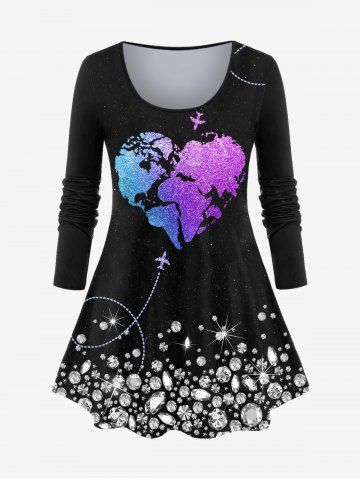 Graphic Tees > Plus Size Valentines 3D Diamond Heart Printed Long Sleeves Tee