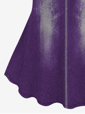 Plus Size 3D Floral Lace Applique Zipper Distressed Denim Print Short Sleeves T-shirt - Concord - 3x
