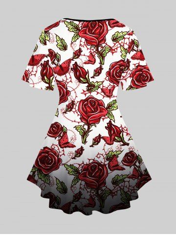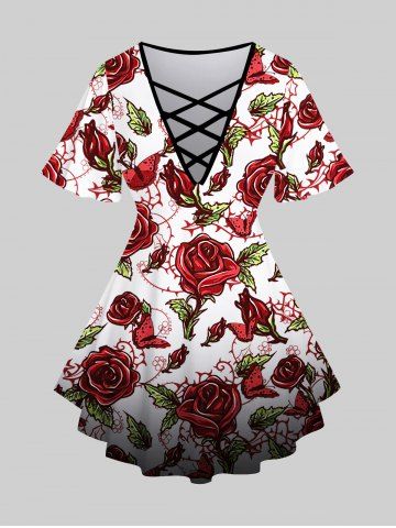 S*****n5Plus Size 3D Flower Leaves Butterfly Print Crisscross V Neck Short Sleeve T-ShirtColor: DEEP RED Size: L | US 12I love this top so much that I have purchased every color and pattern that rosegal offers. I get so many compliments every time I wear it. Great length.