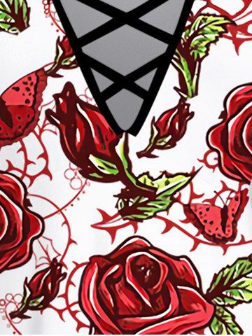 Plus Size 3D Flower Leaves Butterfly Print Crisscross V Neck Short Sleeve T-Shirt - Deep Red - 5x | Us 30-32