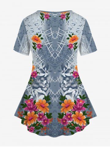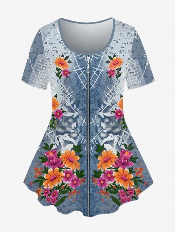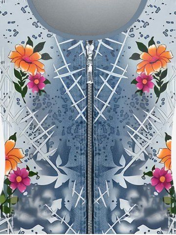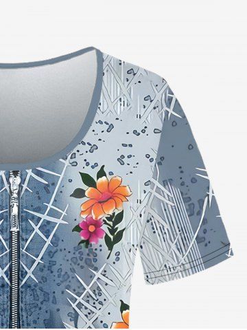 T*****55Plus Size 3D Flower Leaves Zipper Denim Printed Short Sleeve T-Shirt and Pants OutfitColor: MULTIthis outfit is too cute...great material and flattering for plus-size figures