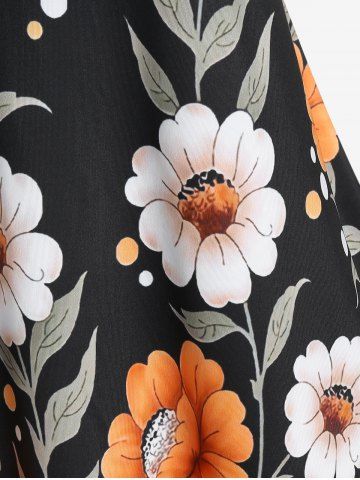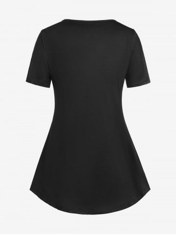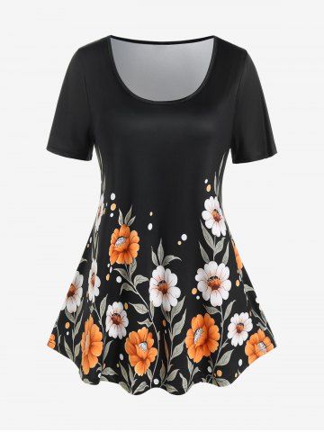 Plus Size 3D Flower Printed Short Sleeves T Shirt - Black - 5x | Us 30-32