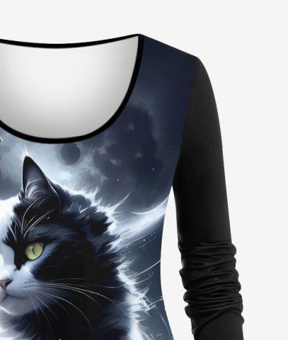 Graphic Tees > Plus Size 3D Glitter Cat Moon Sea Print Ombre Long Sleeves T-shirt