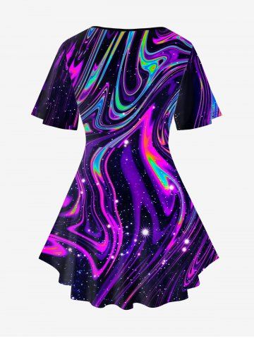 s*****e5Plus Size 3D Glitter Swirl Print Crisscross Short Sleeve T-ShirtColor: PURPLE Size: 3X | US 22-24Super cute top!! It fits and flatters my plus size figure perfectly! I try to stay modest so I’m going to have to wear a cami under the bust area to cover up the girls. Other than that, I love it!!