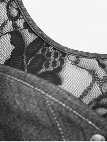 Plus Size 3D Jeans Chains Lace Printed Long Sleeves Tee - Black - 2x | Us 18-20