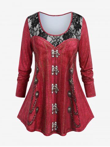 s*****z5Gothic 3D Jean Buckle Print Long Sleeve T-shirtColor: DEEP BLUE Size: 1X | US 14-16I love this top although the blue 1 was out of stock customer service were really good and I reordered the red which is lovely