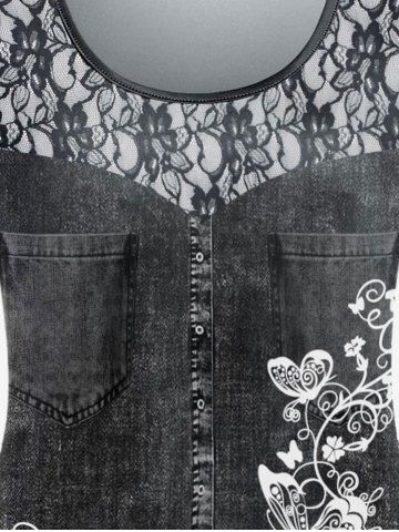 s*****w5Plus Size 3D Jeans Lace Butterfly Printed Short Sleeves TeeColor: BLACK Size: 4X | US 26-28I got this top because it the same style as a blue top I recently got. They are both perfect for work and the print is slimming. I really love it!!