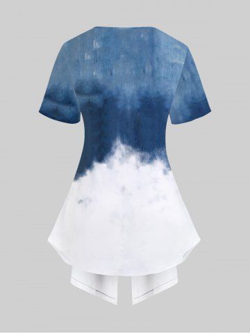 Plus Size 3D Jeans Printed Ombre Short Sleeves 2 in 1 Tee - Blue - 4x | Us 26-28