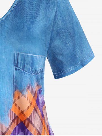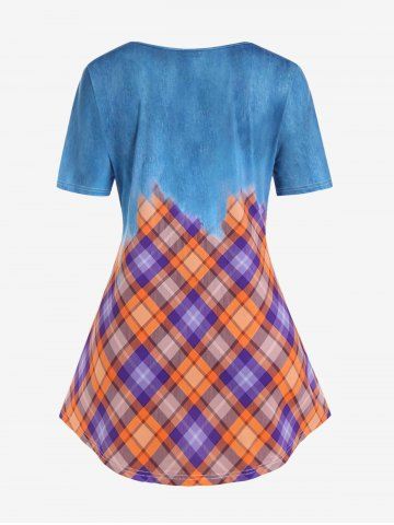 Graphic Tees > Plus Size 3D Jeans Printed Plaid Short Sleeves Tee