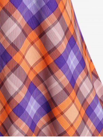 Plus Size 3D Jeans Printed Plaid Short Sleeves Tee - Orange - 5x | Us 30-32