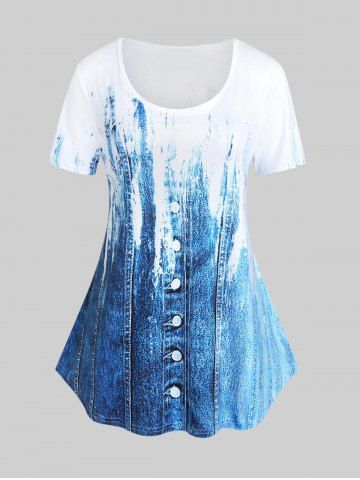 m*****153D Jeans Printed Colorblock Tee and 3D Jeans Printed Colorblock Leggings Plus Size Summer OutfitColor: LIGHT BLUECute and comfy. Highly recommend this shopping for Rosegal
