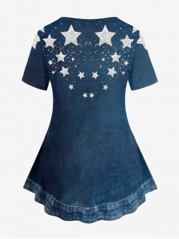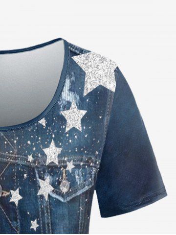 Plus Size 3D Jeans Star Printed Short Sleeves Tee - Blue - S | Us 8