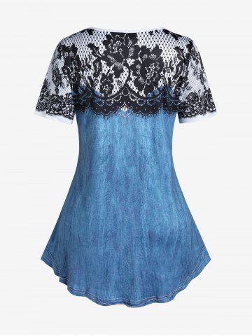 g*****54Plus Size 3D Denim Print Lace Panel Tank TopColor: BLUE Size: 4X | US 26-28I absolutely love this shirt. this shirt goes with everything. causal or formal, it's the perfect shirt to wear.