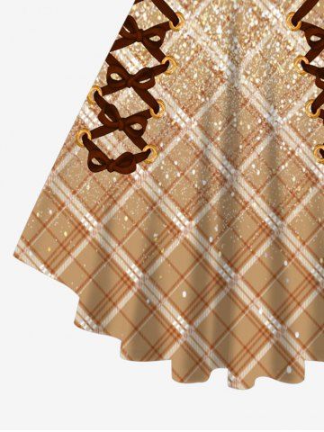 Plus Size 3D Lace Up Ombre Plaid Painting Splatter Print Lattice Top - Light Coffee - 2x