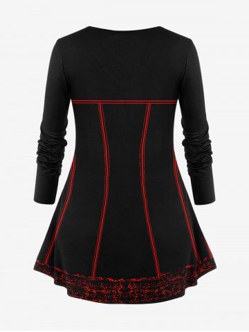 Plus Size 3D Lace Up Ruffles Print Long Sleeves T-shirt - Red - Xs