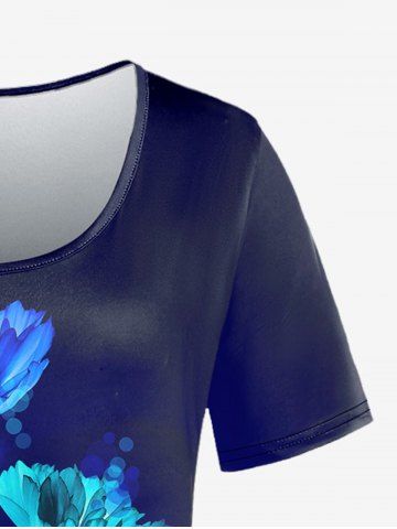 Plus Size 3D Light Flower Printed Short Sleeve Tee - Blue - 1x | Us 14-16