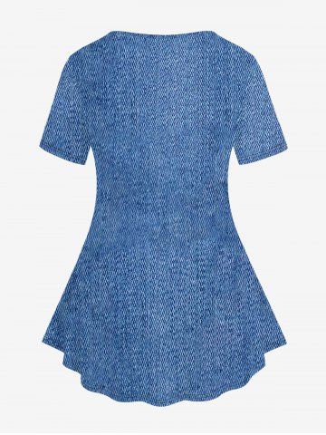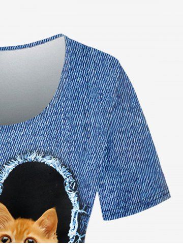Plus Size 3D Ripped Heart Cat Denim Print T-shirt - Blue - Xs