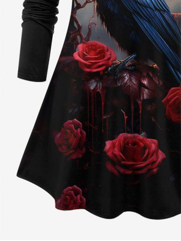 Graphic Tees > Plus Size 3D Rose Flower Bloody Leaf Eagle Mirror Cloud Print Long Sleeves T-shirt