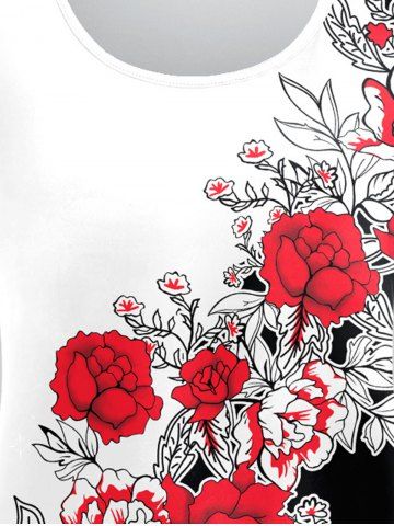 Plus Size 3D Rose Leaf Colorblock Print Short Sleeve Valentines T-Shirt - White - 3x | Us 22-24