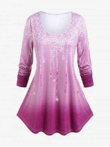 m*****r5Plus Size 3D Sparkles Lighting Printed Long Sleeves TeeColor: LIGHT PINK Size: 1X | US 14-16I love this shirt/blouse it is perfect, and its prettier than the picture. I love the fit and how it flows I only wish I had ordered the pants to go with it
