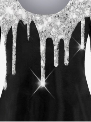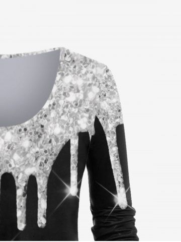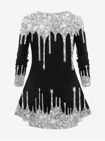 D*****e5Plus Size 3D Sparkles Paint Drop Blobs Printed Long Sleeves TeeColor: BLACK Size: 1X | US 14-16This outfit was awesome with a cute pair of low heels. Very nice for a date night! The pants were a little big but overall the fit was great!