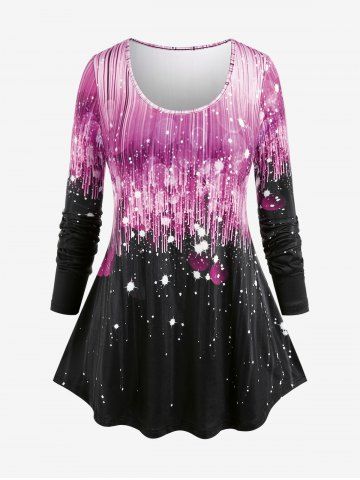 Plus Size 3D Sparkles Pinstripes Printed Short Sleeves Tee