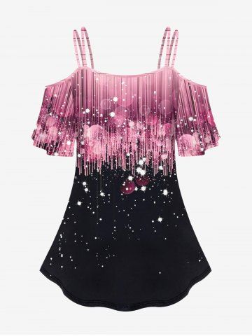 m*****15Plus Size 3D Sparkling Sequin Light Beam Print Cold Shoulder Tops and Flare Pants Disco 70s 80s OutfitColor: LIGHT PINKjust to cute again i like my outfit the colors are blend in well with the black. quality is very nice⭐⭐⭐⭐⭐
